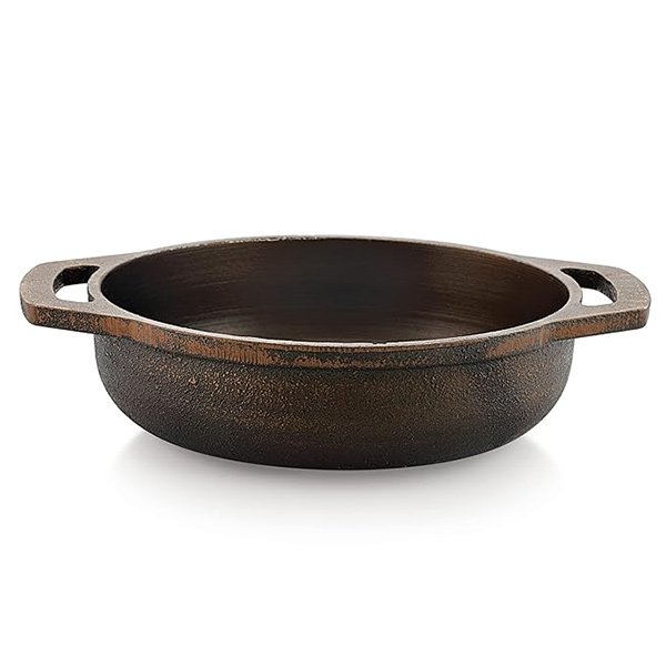 HEALTHY – Cast iron is very healthy. All indian food is flavor rich and cooked in high heat, making cast iron the best fit for us. It also enriches iron content in our food. All our cast iron products are 100% natural and chemical free.