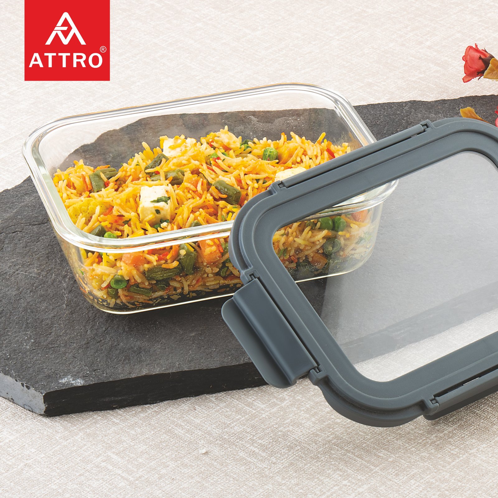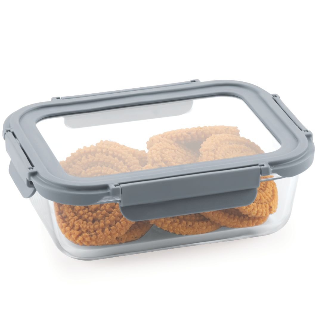 ATTRO Glassox Borosilicate Rectangular Glass Container with Tempered Glass Lid Microwave & Freezer Safe