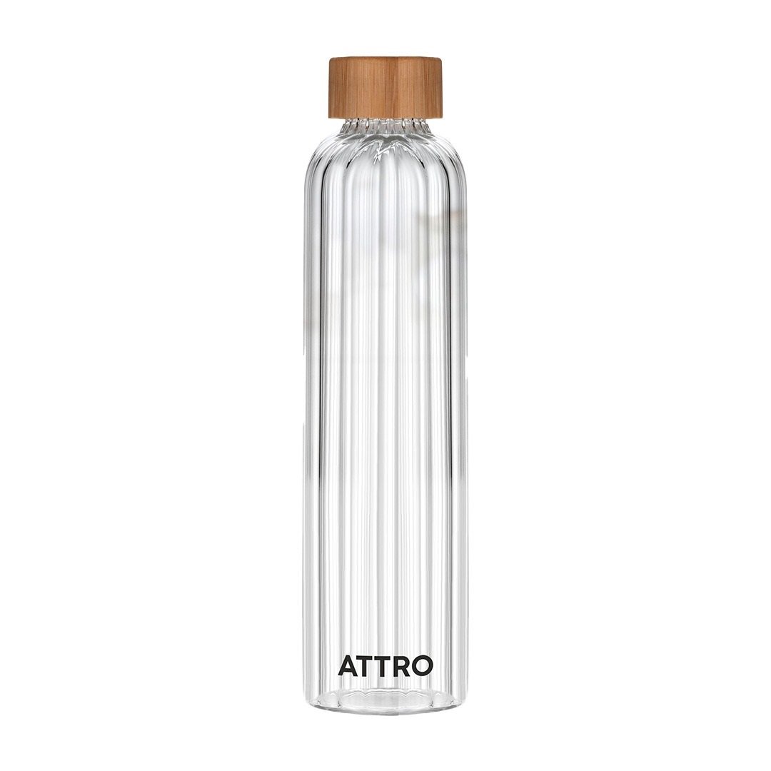 Stay refreshed with the ATTRO Glacia High Borosilicate Glass Bottle, designed for style, safety, and sustainability. This 750ml transparent glass bottle is crafted from heat-resistant borosilicate glass and features a natural bamboo screw lid for a secure, leakproof seal. Ideal for office, travel, school, home, outdoor use, and daily hydration, it’s BPA-free, eco-friendly, and reusable. Perfect for carrying water, detox drinks, fruit-infused beverages, herbal teas, or juices. Its minimalist, lightweight design makes it a perfect glass water bottle for active lifestyles and health-conscious users.