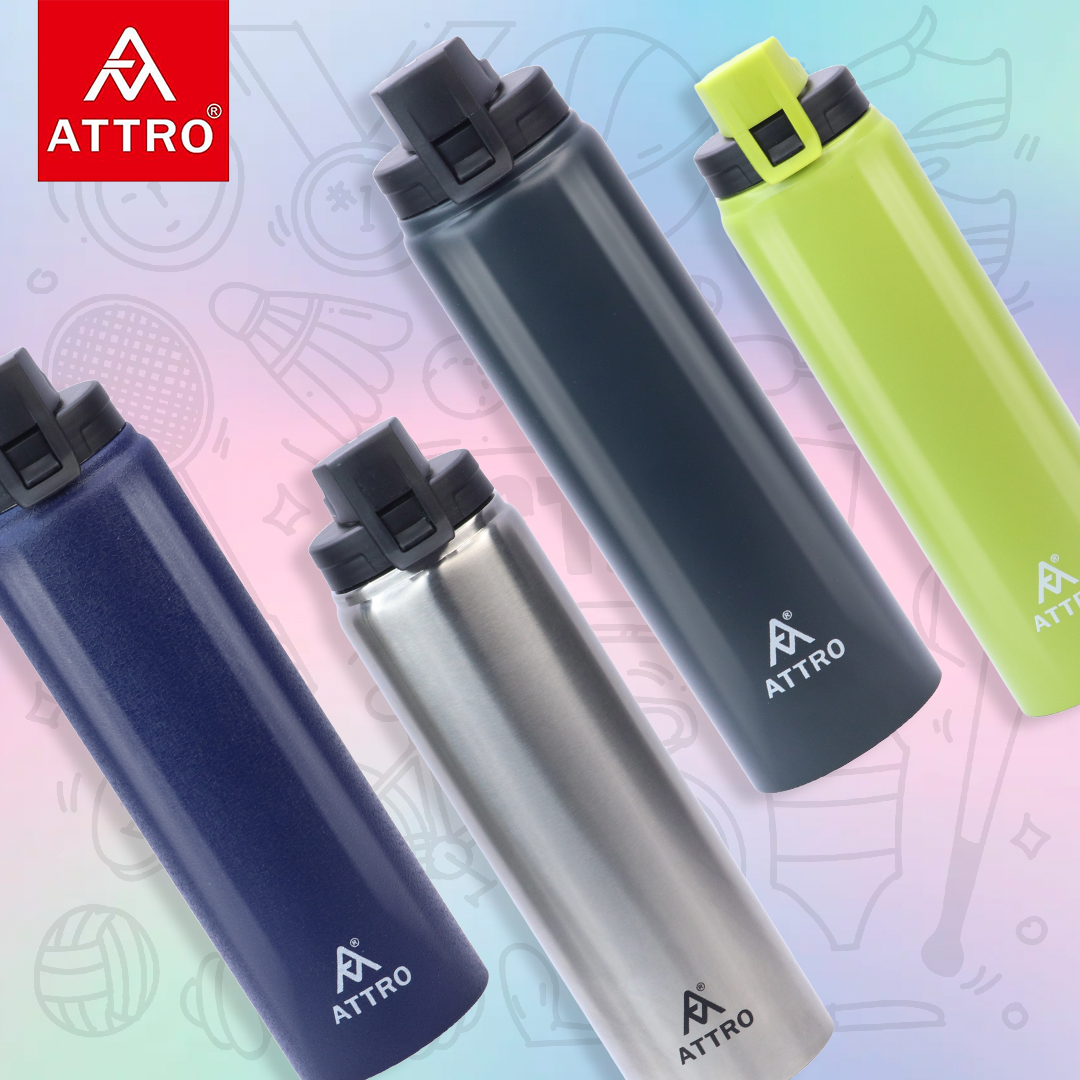 ATTRO Stainless Steel Water Bottle, crafted from premium stainless steel for long-lasting performance and reliability. Designed with a sleek matte finish, it offers a modern, sophisticated look that complements any setting. With a 900ml capacity, this bottle provides ample hydration for your busy day, whether at work, school, or on the go. Made from food-grade materials, it ensures safe and healthy storage of your favorite beverages. The leak-proof design guarantees worry-free portability, preventing spills and maintaining freshness wherever you take it. Perfect for office use, school routines, or outdoor adventures, the ATTRO Stainless Steel Bottle combines functionality, elegance, and strength in one essential hydration companion.