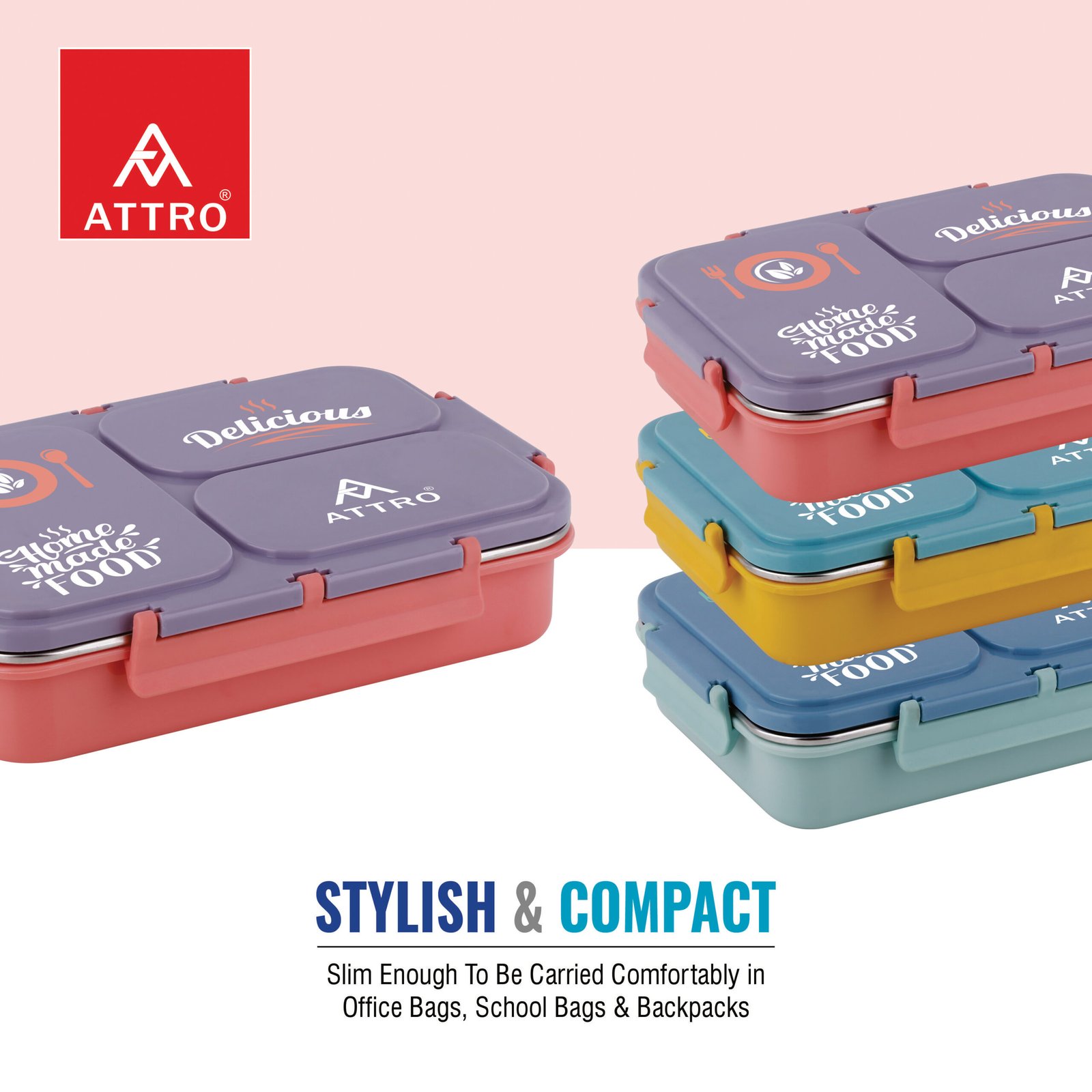 ATTRO Legacy Insulated Kids Lunch Box is thoughtfully designed to keep every meal warm, fresh, and neatly organized. Available in two options – 600ml with two compartments and 700ml with three compartments – it perfectly suits different portion needs. Made from BPA-free, food-grade material, it ensures safety, durability, and easy cleaning. Ideal for school, picnics, and outdoor meals, this lunch box combines practicality with a stylish look. Available in beautiful colors – Pastel Blue, Pastel Violet, Pastel Green, Green, Peach, Grey, and Blue.