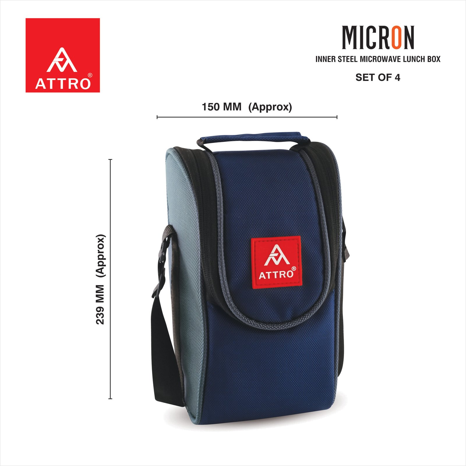 Be the first to review “Attro Micron Stainless Steel 1040 ml Double Wall Lunch Box – 4 Containers with Bag, Fork & Spoon”