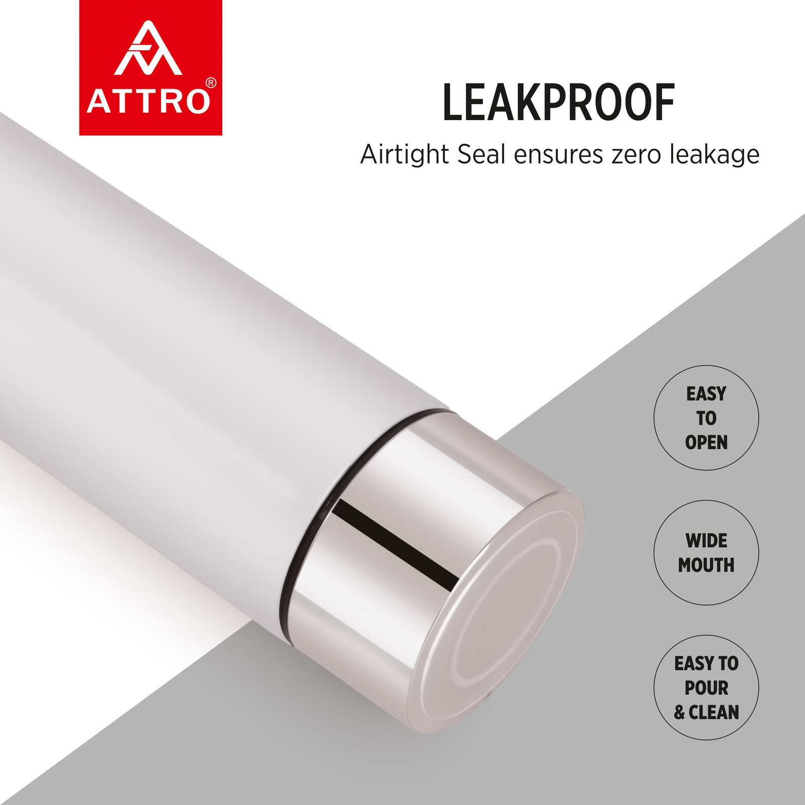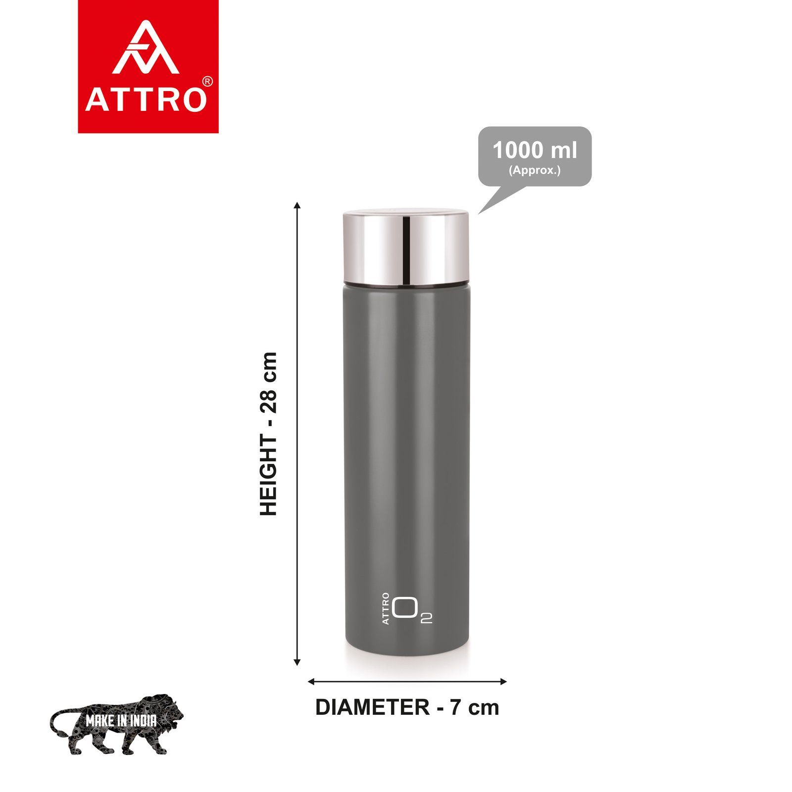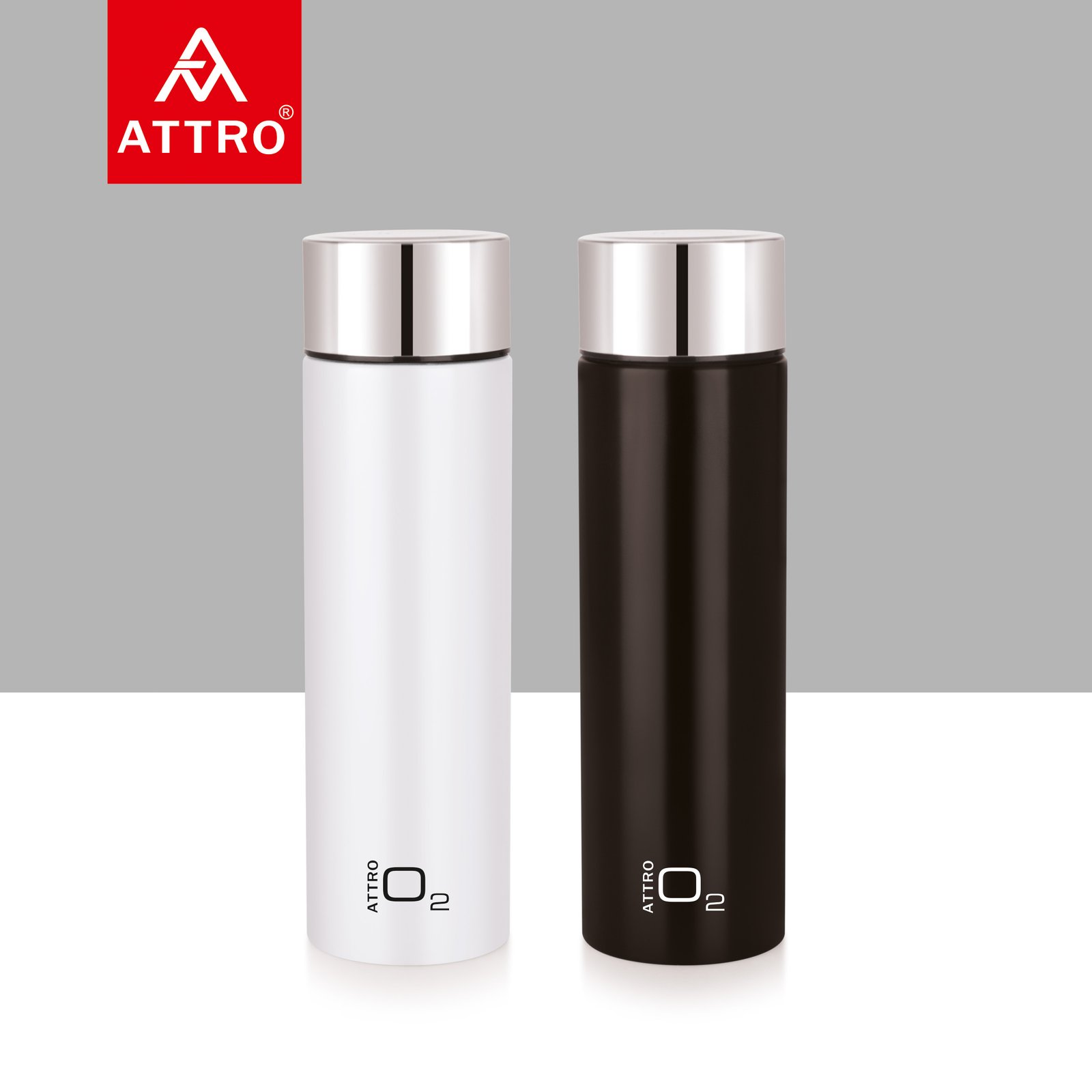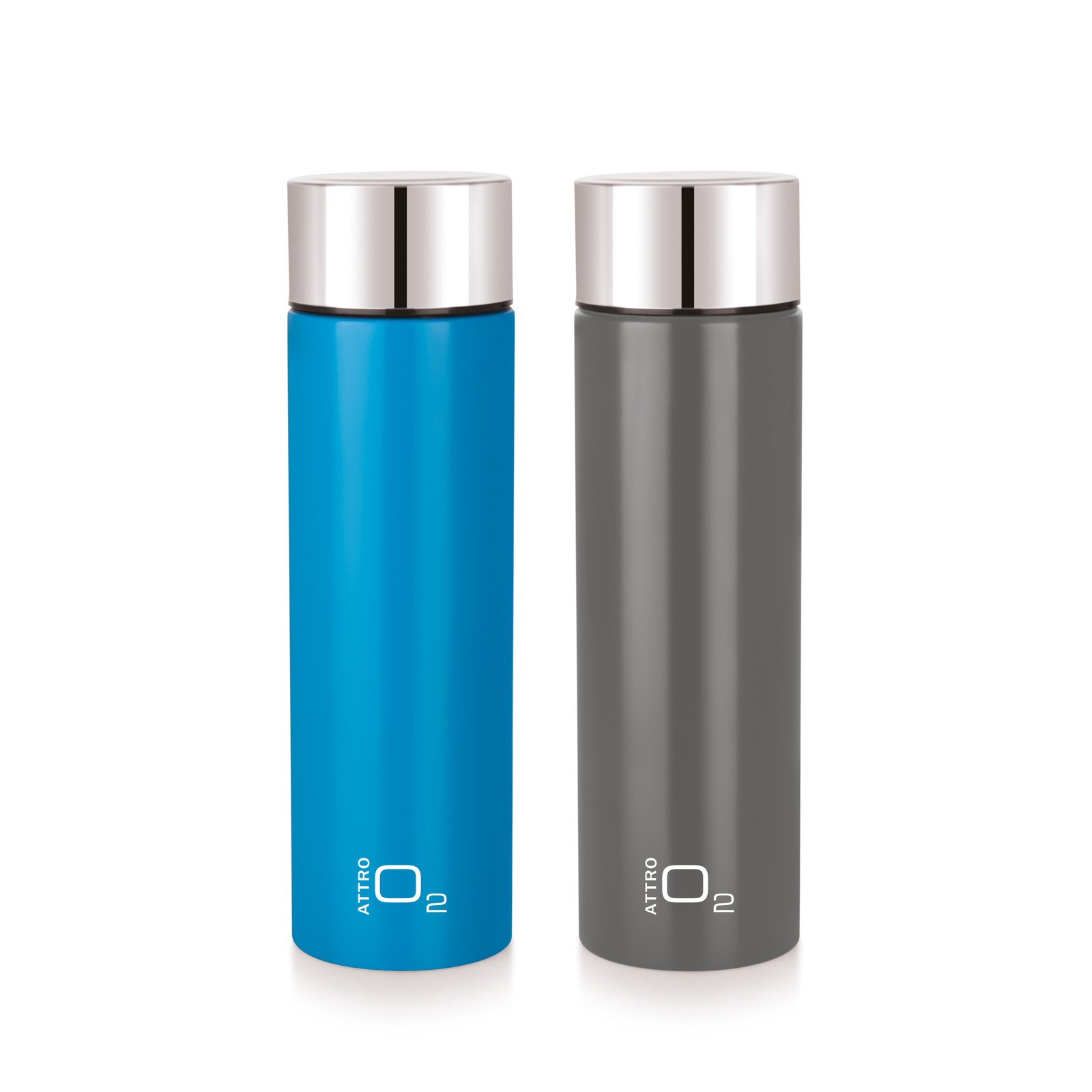 Attro O2 1100ml Stainless Steel Single Wall Water Bottle, Leak-Proof, Set of 2 – Assorted