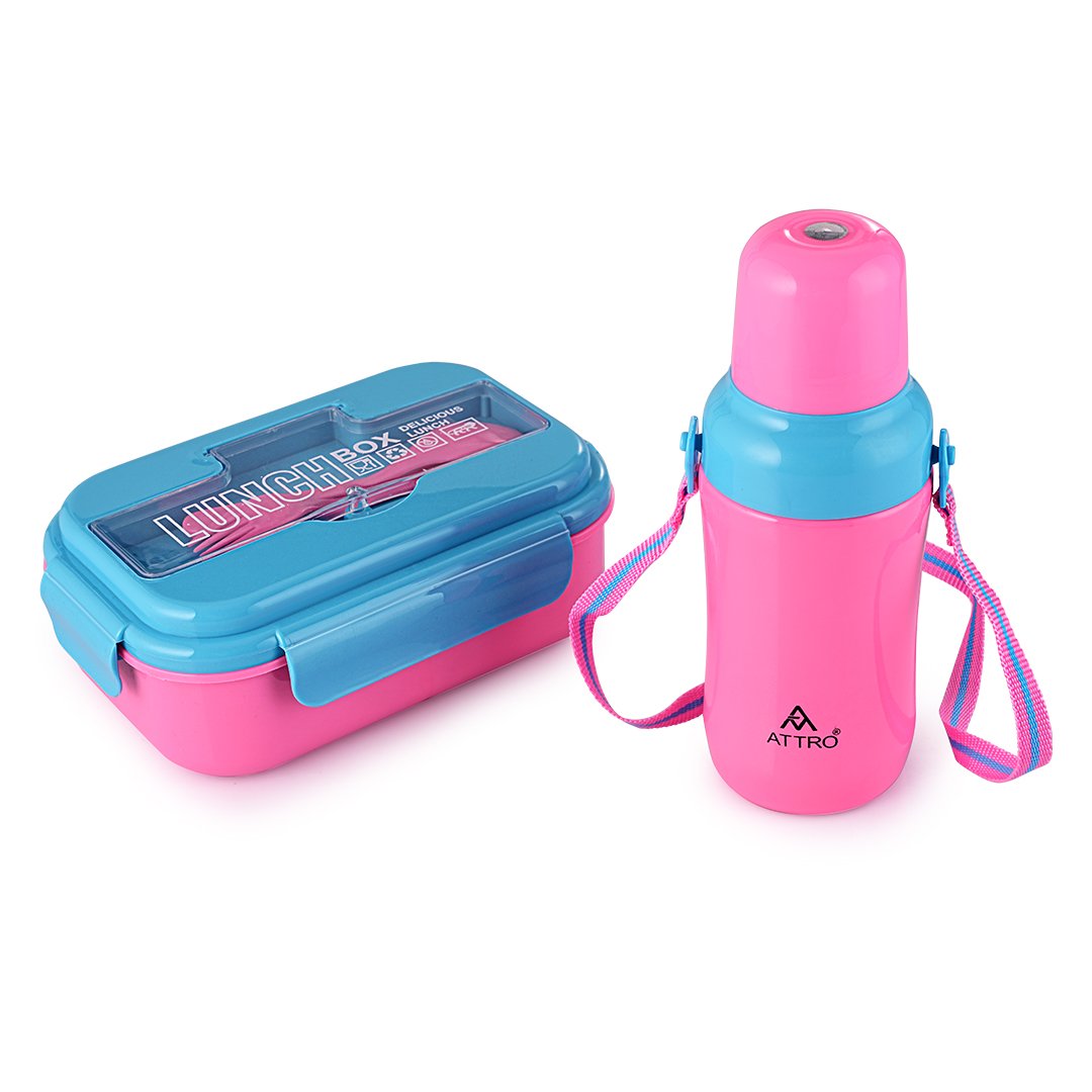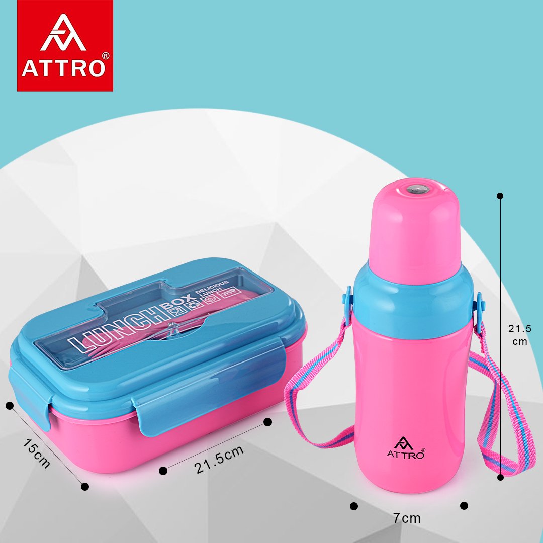 The Attro Magic Combo Set—the ultimate mealtime solution for school kids. This set features a BPA-free, food-grade lunch box with three compartments, perfect for keeping meals organized with a main dish, fruits, and snacks. It includes a built-in spoon and fork for added convenience, ensuring your child has everything they need for a satisfying lunch. The matching water bottle is designed with a hand strap, making it easy for kids to carry it wherever they go. Made from high-quality, BPA-free materials, both the lunch box and water bottle ensure your child’s food and drinks remain fresh and safe. Thoughtfully designed for practicality and safety, the Attro Magic Combo Set is ideal for school, outings, and everyday use, providing peace of mind for parents and a delightful experience for kids.