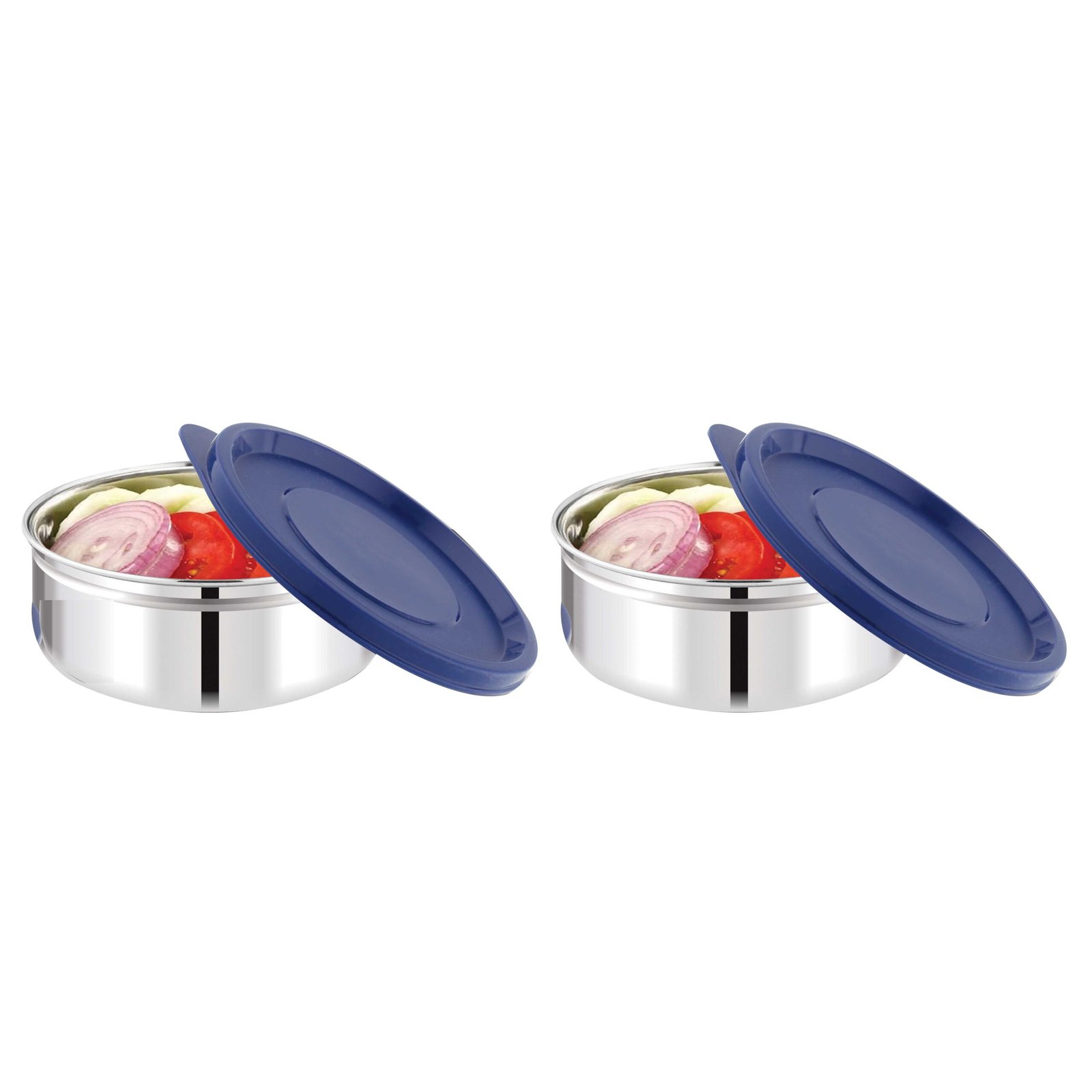 ATTRO Set of 2 Prime Stainless Steel Storage Containers is designed for durability, convenience, and everyday use. Made from premium-quality stainless steel with a sturdy single-wall design, these containers come with airtight and leak-proof lids that keep your food fresh, secure, and spill-free. Available in 250 ml, 400 ml, and 550 ml capacities, they are perfect for storing snacks, fruits, dry items, or small meal portions for office, school, picnics, or travel. The elegant Black and Blue colors add a stylish and modern touch to your kitchen or lunch kit. Compact, lightweight, and easy to clean, these containers are a practical and reliable choice for your daily food storage needs.