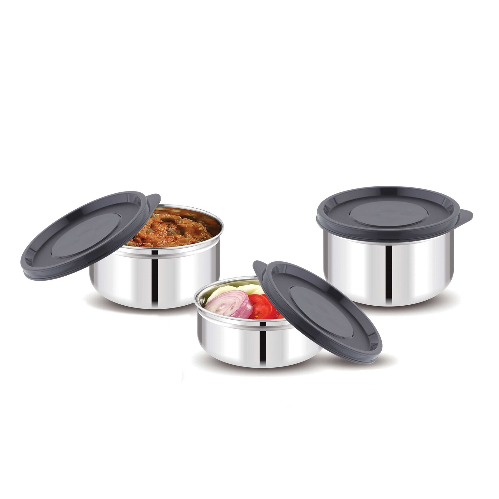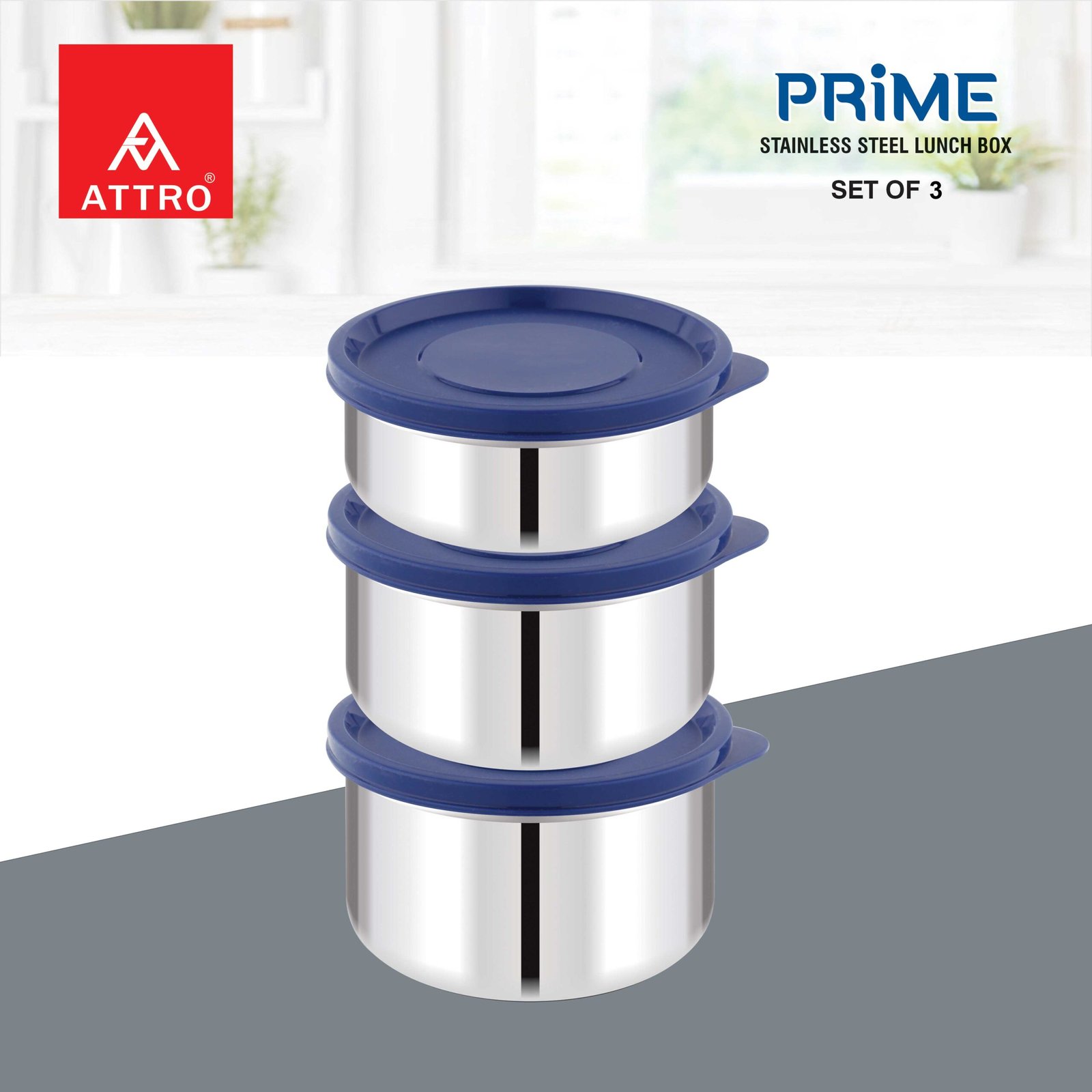The ATTRO Prime Set of 3 Stainless Steel Single Wall Storage Containers is thoughtfully designed to meet your everyday storage and meal-carrying needs. Crafted from high-quality, food-grade stainless steel, these containers ensure durability, hygiene, and long-lasting freshness. Each container features an airtight and leak-proof lid, keeping your food secure and preventing spills during travel. With a convenient set of 550ml, 400ml, and 250ml capacities, it’s perfect for packing a complete meal for office, school, or picnics. The sleek Black & Blue design adds a modern and stylish touch, making it an ideal choice for both home and outdoor use.