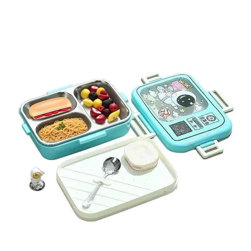 ATTRO Rock Star Themed Kids 3 Compartment Leak-Proof Lunch Box with Steel Inner & Spoon, 1400ml+80ml