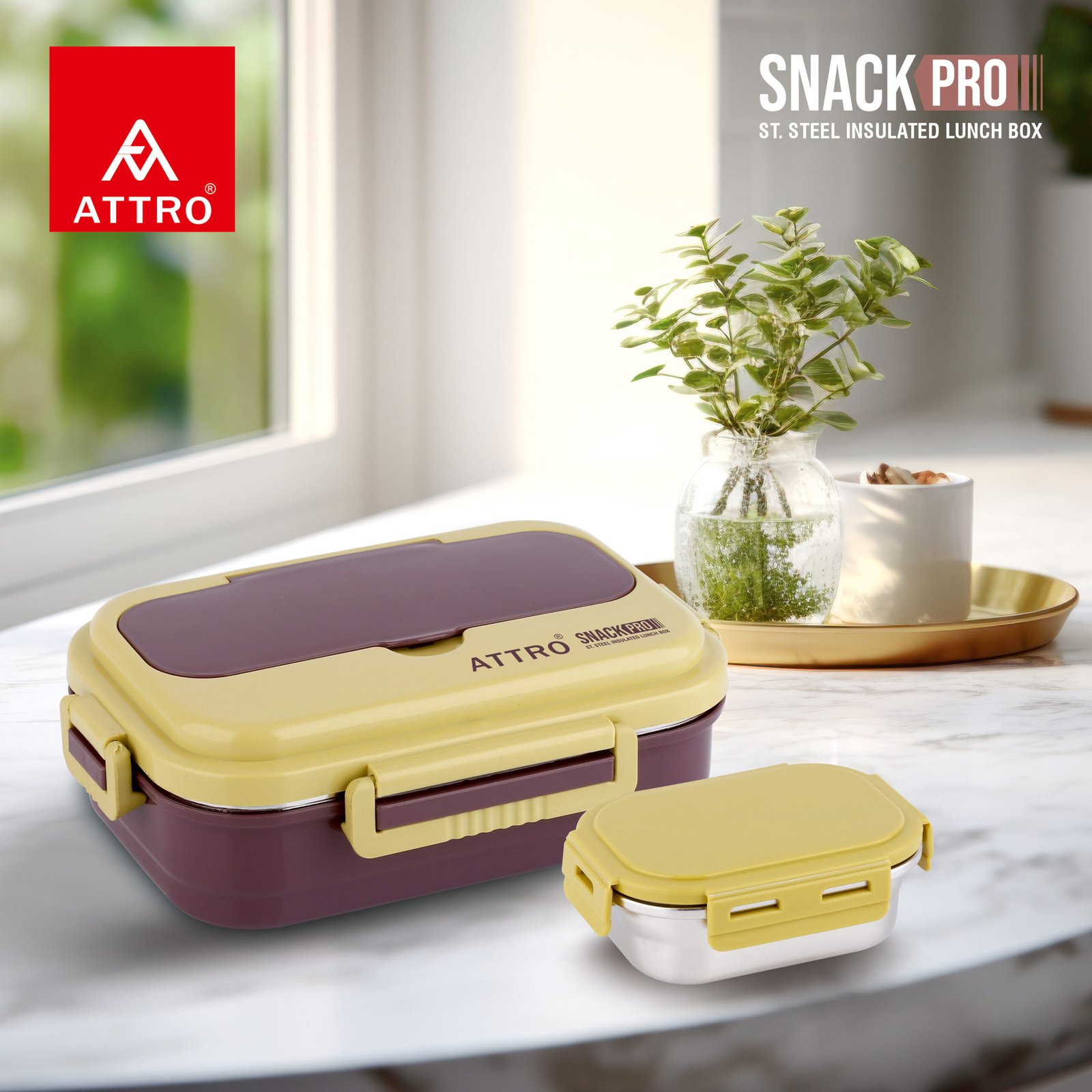 • STYLISH COLOR COMBINATIONS FOR EVERYDAY USE: Available in attractive and modern shades—Yellow Brown, Pink Purple, and Pink Maroon—the ATTRO SnackPro adds a touch of elegance to your daily routine. Its sleek, insulated design not only looks great but also provides reliable performance for everyday use. Perfect for kids and adults alike, it blends functionality with contemporary style.