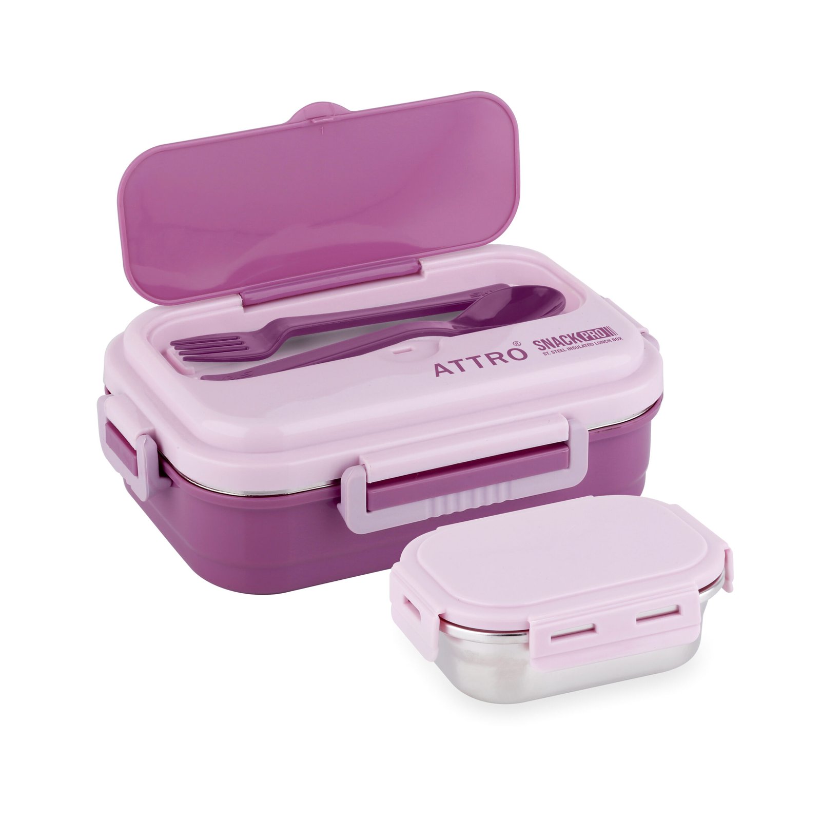 ATTRO SnackPro Insulated Stainless Steel Lunch Box with Small Container, Fork & Spoon –800ml + 250ml