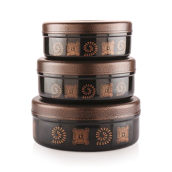 Be the first to review “Attro Wedding Collection Stainless Steel Puri Dabba with Lid, Food Storage Containers Set of 3”